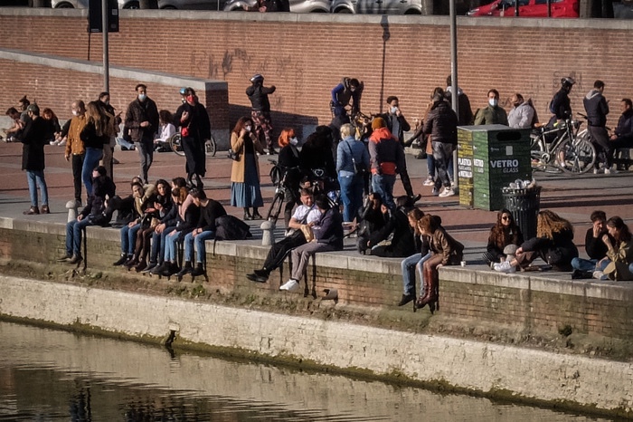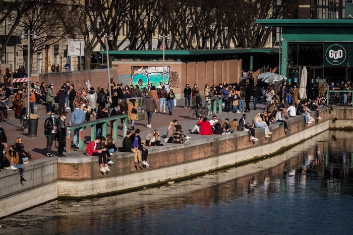 L’ora dell’aperitivo ha attirato moltissimi giovani sui Navigli a Milano, che si sono riuniti approfittando della bella giornata di sole per consumare cibo e bevande da asporto. Si è quindi reso necessario bloccare i punti di accesso alla Darsena per evitare assembramenti dopo quanto accaduto lo scorso weekend negli ultimi giorni di zona gialla. Nonostante la massiccia presenza delle forze dell’ordine, non sempre è stato rispettato il distanziamento sociale, con gruppetti di persone sedute lungo l’argine del Naviglio a distanza ravvicinata.
