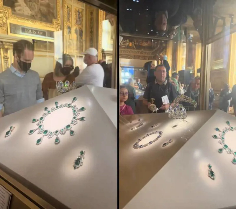 Una volta dentro, hanno utilizzato utensili da taglio — seghe a catena e smerigliatrici — per rompere le teche espositive della Galerie d’Apollon, e in pochi minuti hanno prelevato nove pezzi di gioielleria appartenenti alla collezione imperiale e regale francese.
